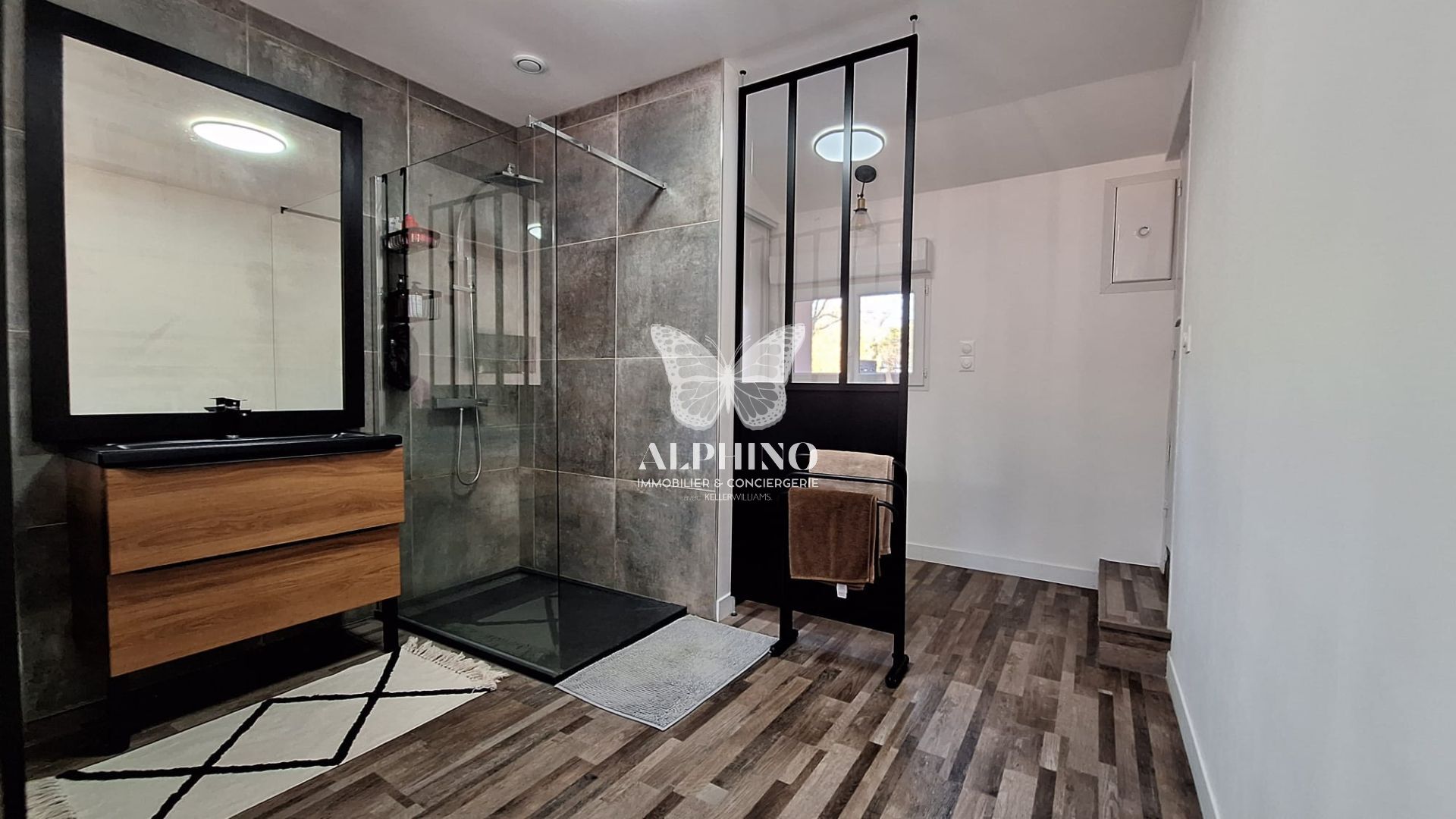 Elle est composée de quatre chambres, d'une cuisine équipée et de trois salles de bains.