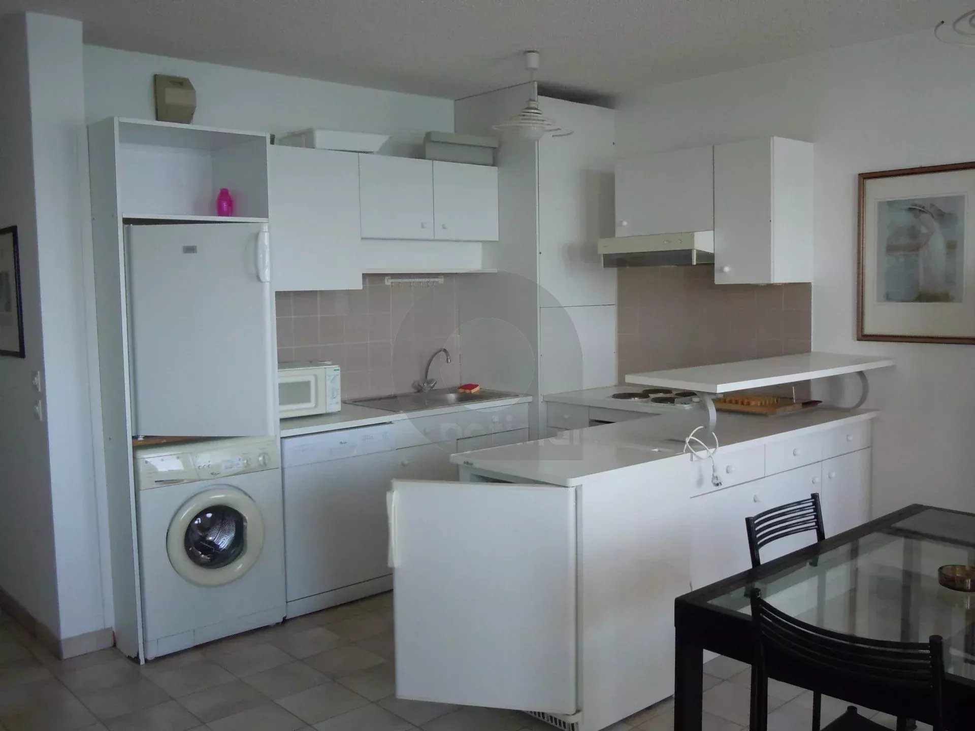 Appartement T2 en RDC de 43 m² environ comprenant un séjour de 15.5 m²,une cuisine indépendante aménagée et semi-équipée (plaque vitrocéramique et hotte), une petite buanderie, une chambre avec placard, une salle d'eau / WC et un dégagement avec placard.