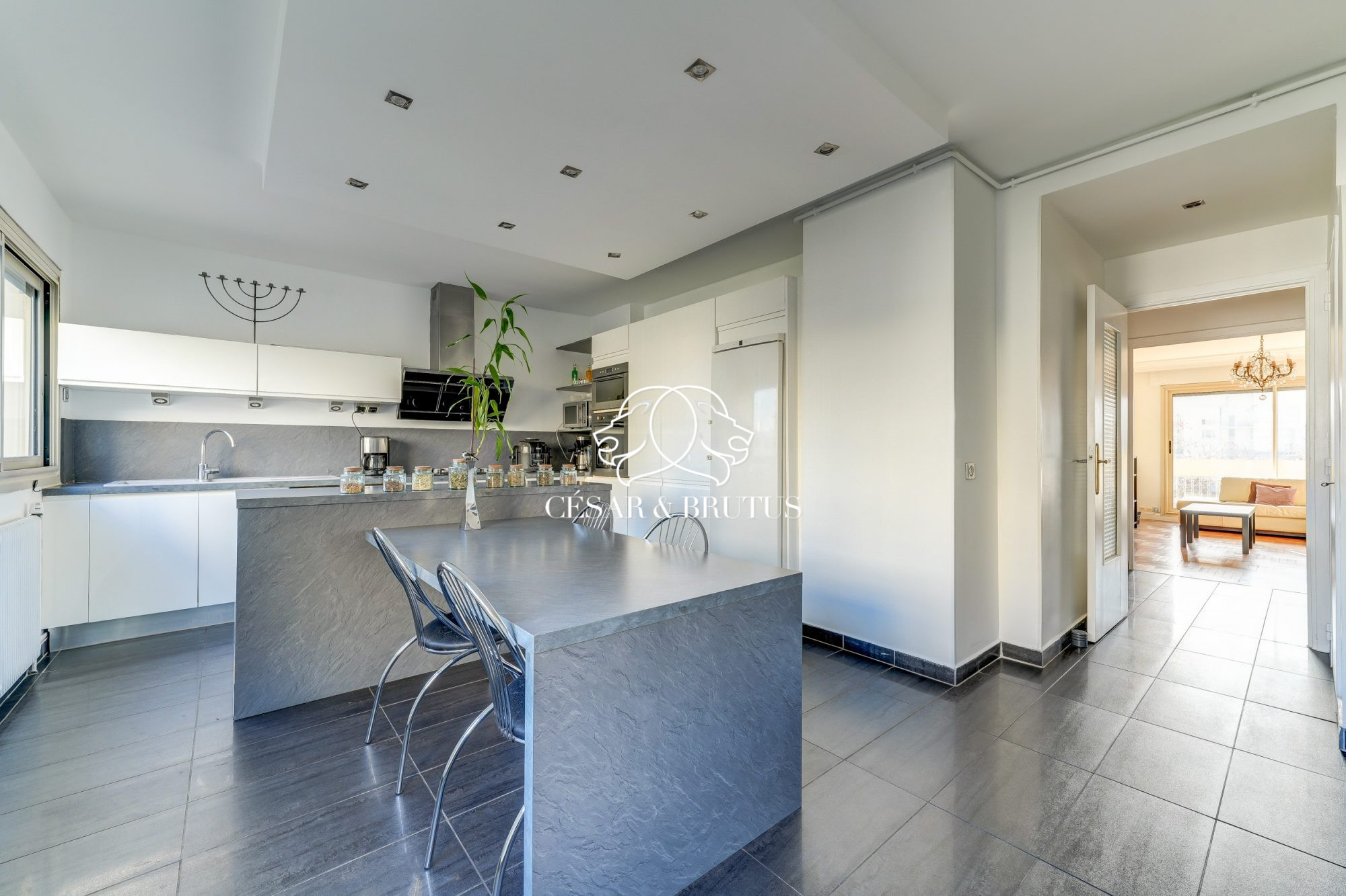 Cesar et Brutus vous présente en exclusivité ce superbe appartement de 120 m², spacieux et baigné de lumière, offrant une vue dégagée et un cadre de vie agréable au coeur d'un quartier dynamique et sécurisé.