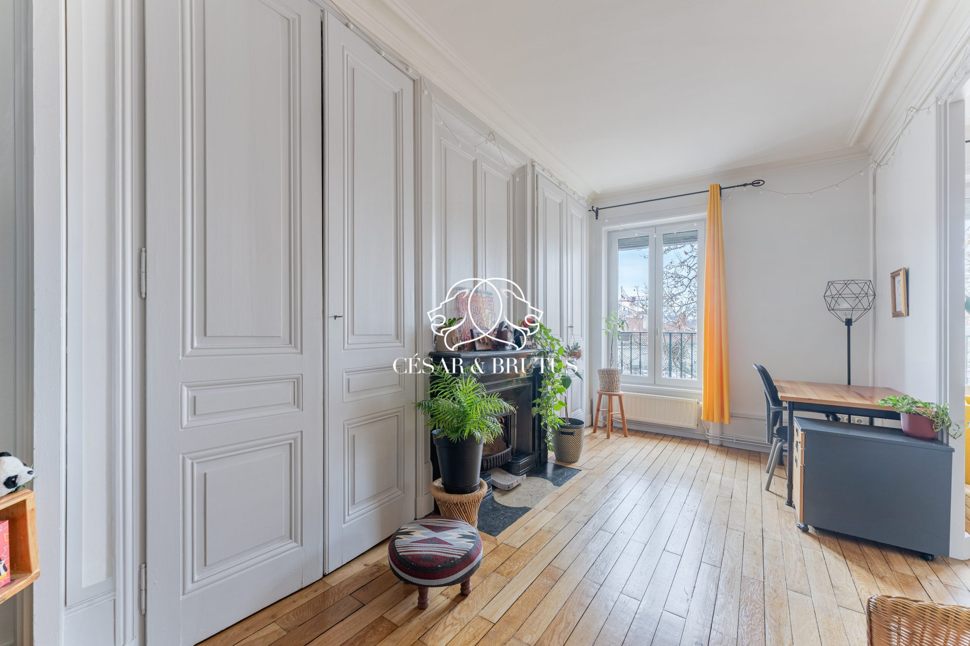 L'authenticité préservée : Un véritable voyage dans le temps avec son parquet d'origine, ses moulures délicates et ses grandes ouvertures qui apportent une élégance naturelle à chaque pièce.