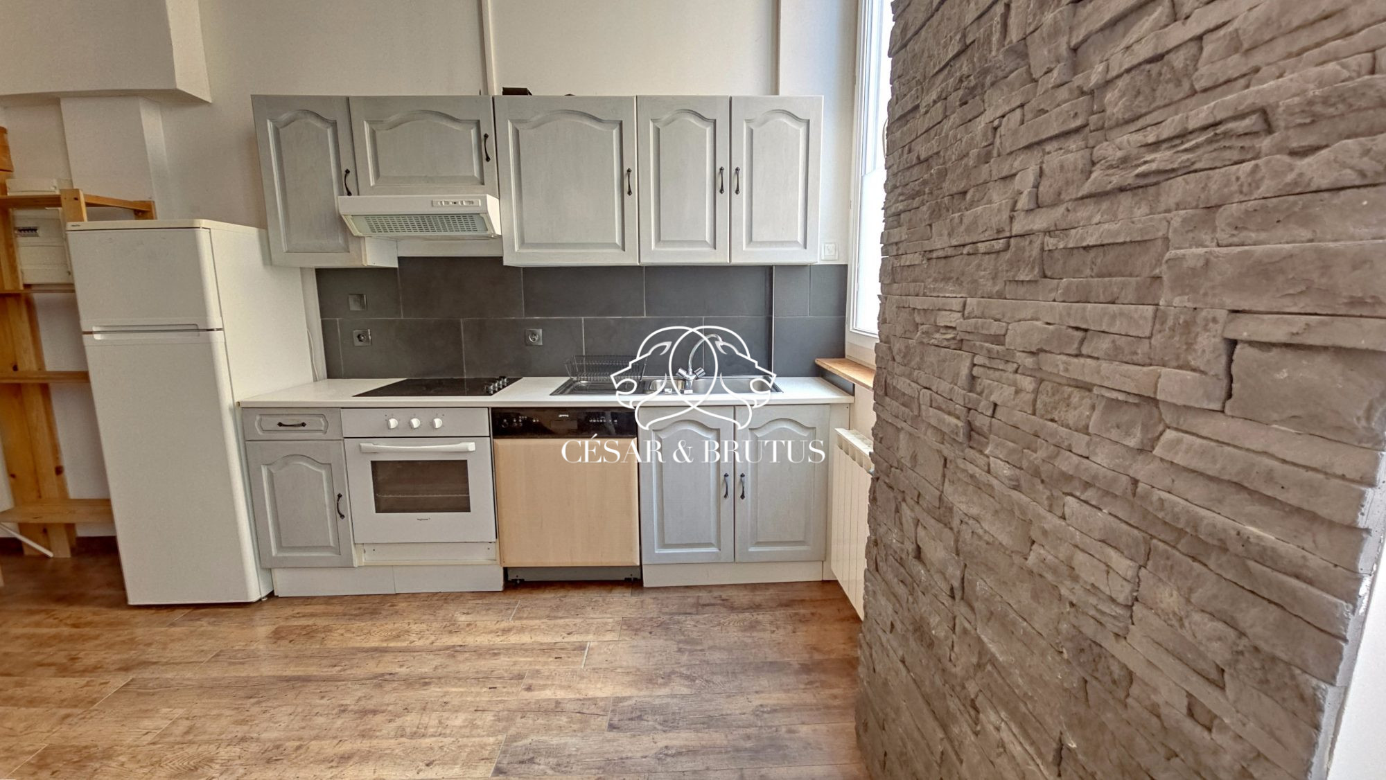 Orienté Sud-Ouest, cet appartement se compose d'une entrée, d'une pièce de vie composée d'un espace salon et d'une cuisine meublée et équipée bénéficiant d'une belle luminosité grâce à deux grandes fenêtres double vitrage avec volets roulants électriques.