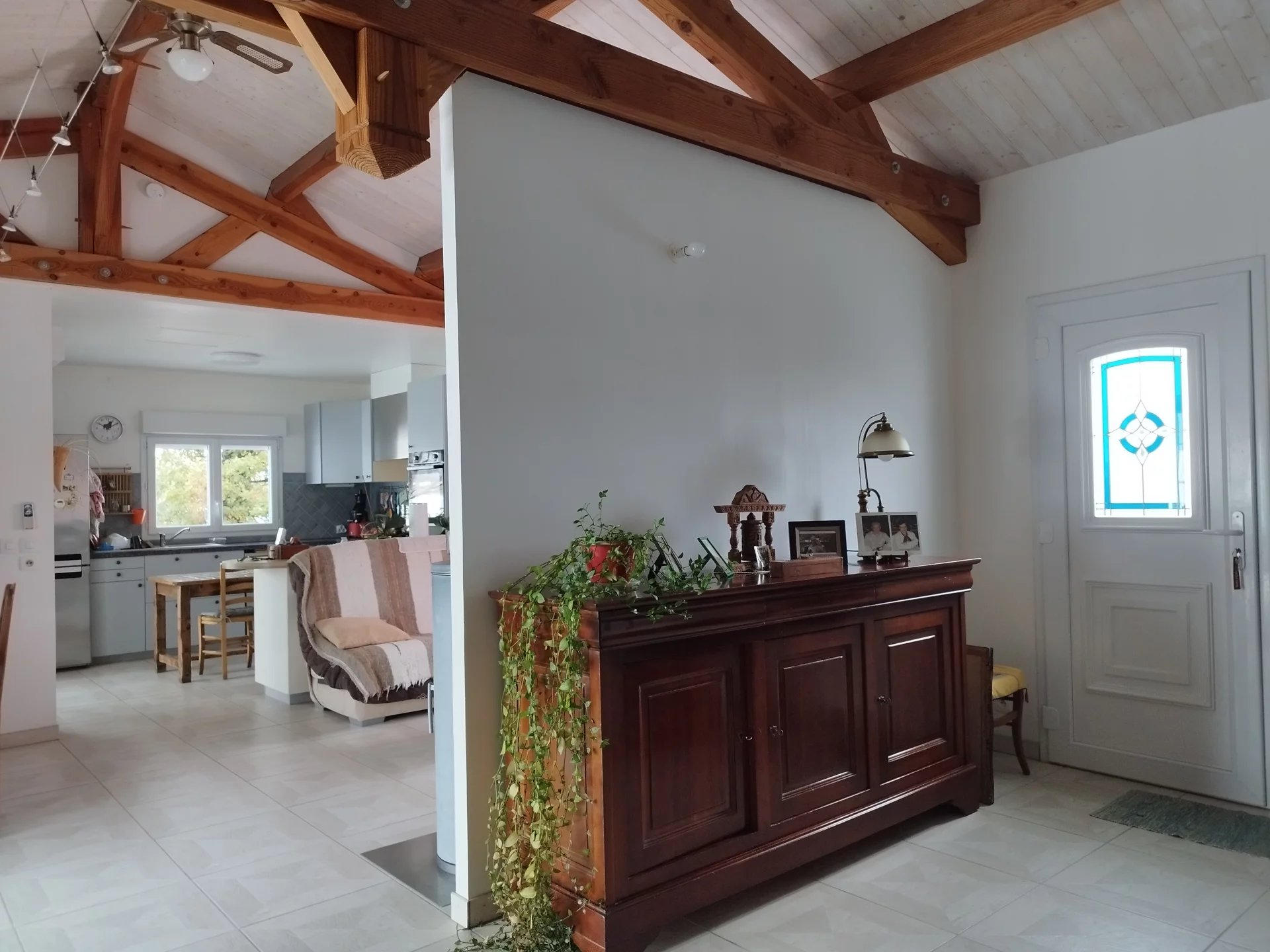 Construite en parpaings et recouverte d'ardoises, cette maison offre des volumes généreux et des aménagements fonctionnels pour un cadre de vie agréable :