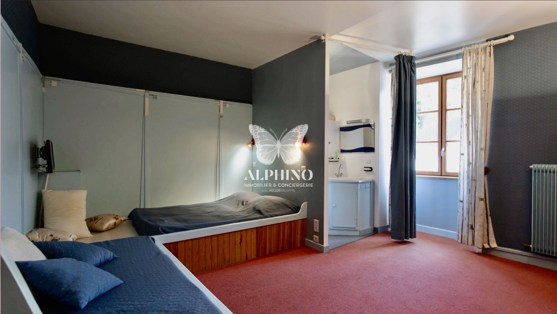 La deuxième aile offre un deux pièces dont une chambre avec salle d’eau et sanitaire.