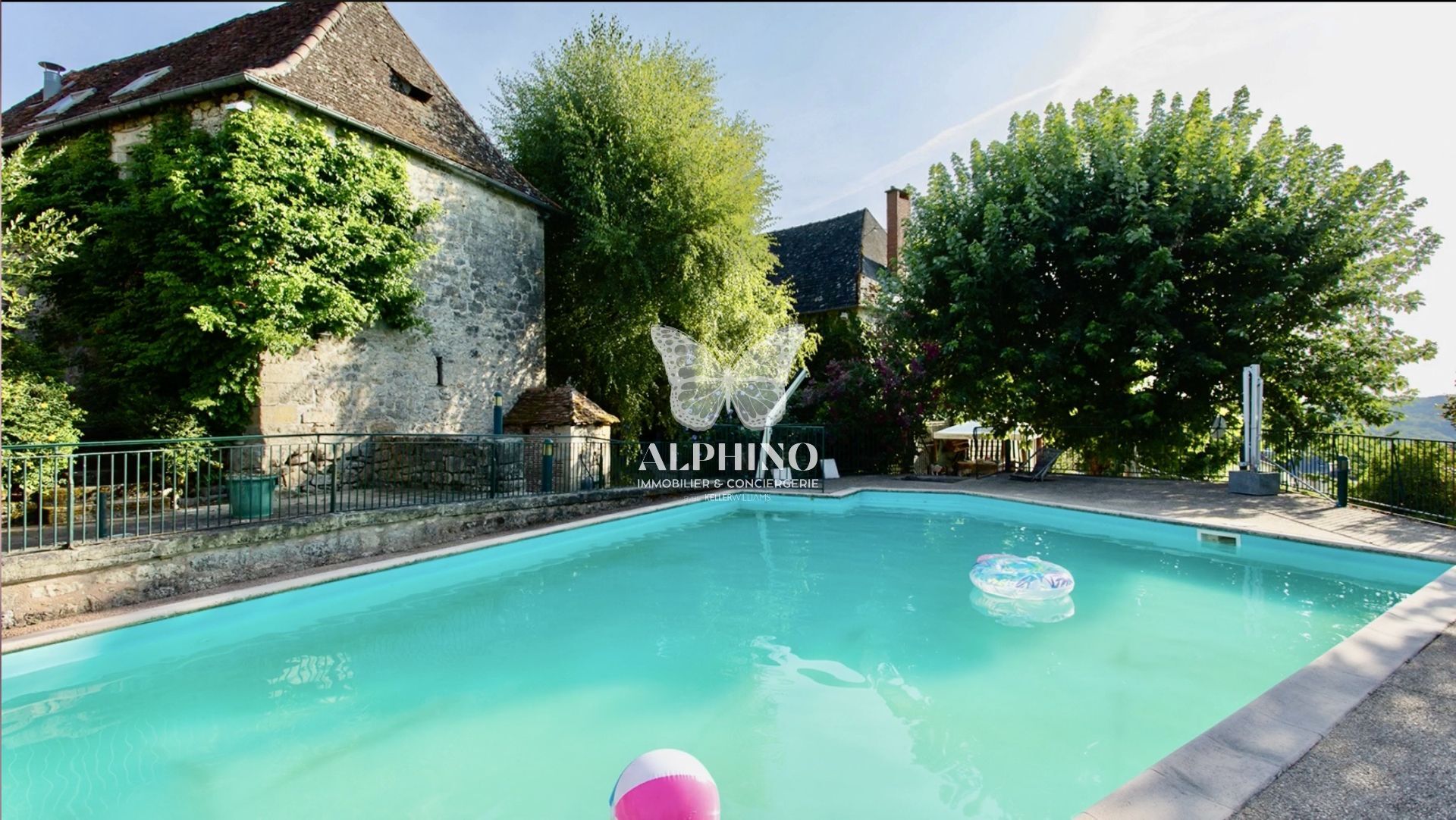 Découvrez cet ensemble immobilier comprenant une maison de maître de 400m2 du XVIIIe siècle, rénovée en 2000, avec une piscine de 80m2, deux terrasses et deux bâtiments annexes, dont l’un est aménagé en ateliers. L’ensemble est situé au cœur du charmant village d’Ayen, offrant une vue imprenable sur la vallée (proche de Brive-la-Gaillarde, Pompadour et Terrasson), en Corrèze, à la limite de la Dordogne et du Périgord Noir.