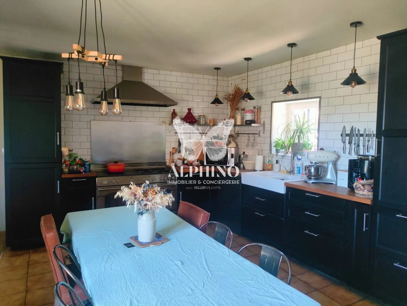 Au rez-de-chaussée, vous découvrirez une cuisine aménagée et équipée, ouverte sur une belle pièce de vie chaleureuse, avec un accès direct à une terrasse en bois.