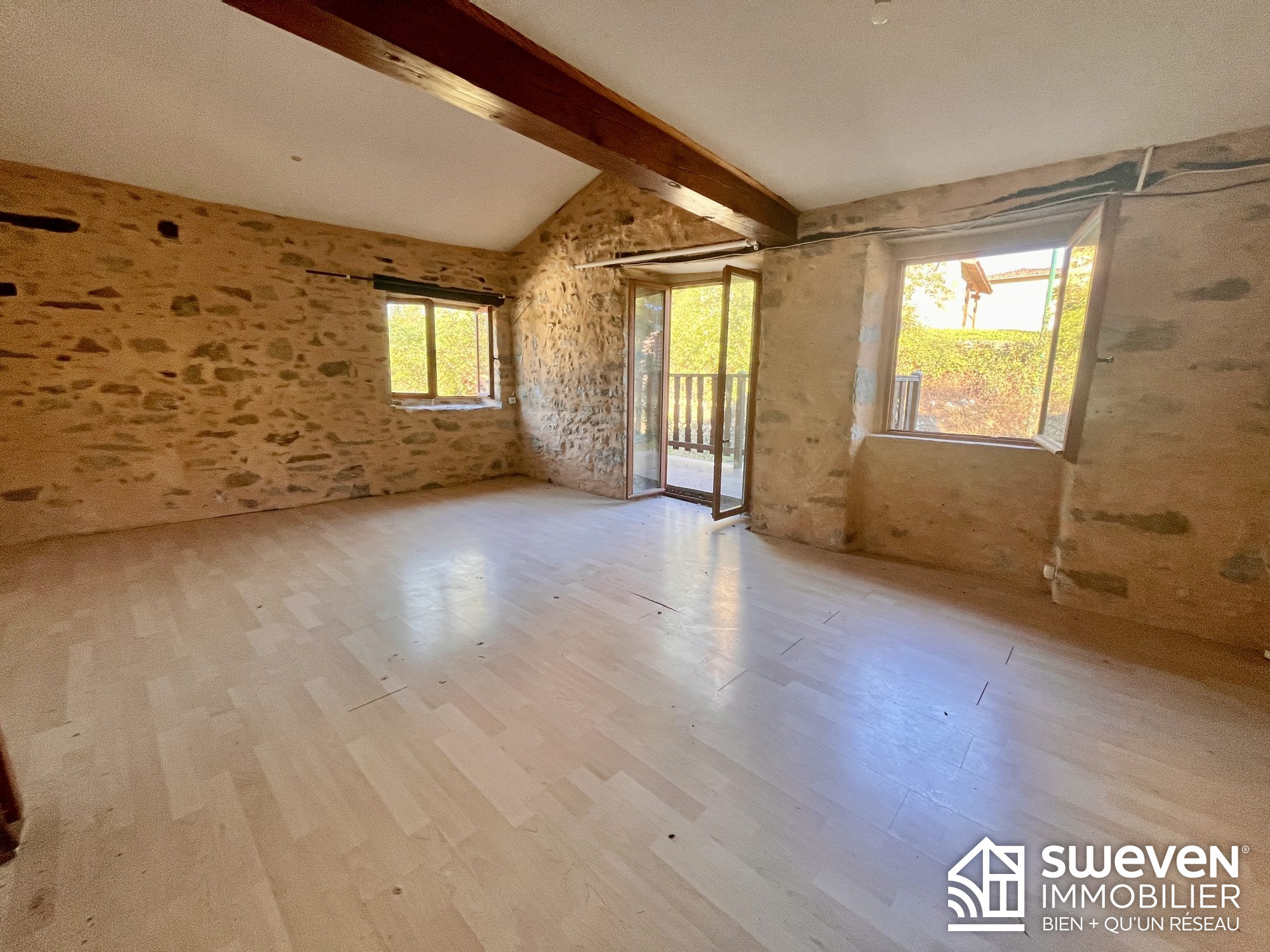 Idéalement située au coeur du Parc Naturel des Pyrénées ariégeoises, entre Sainte Croix Volvestre et St Girons, dans le charmant village de Mérigon, venez découvrir cette maison en pierre exposée Sud Est, à rafraichir comprenant au rez de chaussée, un cellier extérieur, une pièce de vie avec cuisine ouverte, une salle de bain avec wc. A l'étage, une grande pièce de vie lumineuse avec de beaux volumes, un espace mezzanine et une jolie terrasse couverte. Quelques travaux seront nécessaires (électricité, fosse septique, tour de cheminée...). Un terrain composé de plusieurs parcelles avec du bois pour un total de 7473m2 est situé face à la maison et vous permettra,, après quelques heures de débroussaillages, de faire un potager, d'entretenir un petit bois... le ruisseau du Volp est accessible depuis les parcelles..