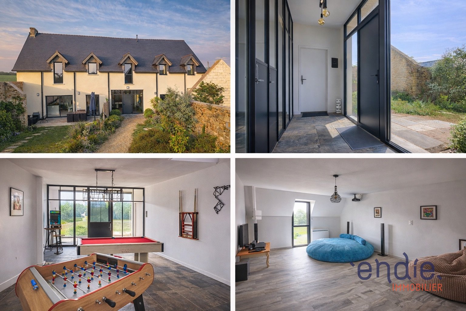 Bienvenue à Plonevez-Porzay . À seulement quelques minutes des plages, ce remarquable domaine du XIX eme siècle incarne un art de vivre rare, où le charme de l'ancien dialogue harmonieusement avec des prestations contemporaines de grande qualité. Entièrement repensée par un architecte, la propriété a bénéficié d'une rénovation intégrale, menée avec exigence et dans le respect de son identité. Nichée au cur d'un parc paysager de plus d'un hectare, elle profite d'un environnement naturel préservé et d'une vue ouverte sur la campagne, sans aucun vis-à-vis un privilège devenu particulièrement recherché. La demeure principale Élégance, volumes et lumière Développant environ 195 m², la maison principale séduit dès l'entrée par son atmosphère raffinée et ses proportions harmonieuses. La vaste pièce de réception, baignée de lumière, a été pensée comme un véritable lieu de vie et de partage. Ouverte sur une terrasse en bois agrémentée d'un spa nordique, elle invite à savourer chaque saison dans un décor apaisant. L'espace nuit accueille quatre chambres, dont une superbe suite parentale avec dressing et salle d'eau privative, offrant confort et intimité. Une buanderie fonctionnelle ainsi qu'un double garage attenant complètent l'ensemble avec discrétion et praticité. Ici, tout évoque la douceur de vivre et l'équilibre parfait entre maison de famille et résidence de caractère. Deux gîtes classés 4 étoiles d'environ 110m2 Chacun Charme, réputation et potentiel Au sein d'une bâtisse de caractère mêlant pierre ancienne et écriture architecturale contemporaine, deux gîtes classés 4 étoiles ont été aménagés avec une attention particulière portée aux matériaux, aux volumes et au niveau de prestation. Appréciés pour leur qualité et leur atmosphère, ils séduisent une clientèle fidèle en quête d'authenticité et de confort : séjours en famille, escapades entre amis, retraites au vert ou télétravail. L'activité, immédiatement opérationnelle, constitue une opportunité rare de conjuguer projet de vie et investissement patrimonial, tout en laissant entrevoir de belles perspectives de développement. Un appartement indépendant Discrétion et polyvalence Un appartement indépendant d'environ 44 m² vient parfaire ce domaine avec élégance. Idéal pour une location ou accueillir famille et amis en toute autonomie ou préserver un espace privé, il apporte une flexibilité particulièrement recherchée dans ce type de propriété. De vastes dépendances représentant plus de 400 m² restent à réinventer, offrant un potentiel exceptionnel pour donner naissance à un projet ambitieux, qu'il soit familial, artistique ou professionnel. Un lieu rare pour une vie choisie Plus qu'une propriété, ce domaine offre une véritable expérience : celle d'un quotidien tourné vers la nature, le calme et l'espace, à proximité immédiate du littoral. Une adresse confidentielle destinée aux acquéreurs en quête d'un bien singulier, capable d'allier résidence de charme, accueil haut de gamme et qualité de vie. Dossier de présentation complet et reportage photographique et visite virtuelle disponibles sur demande. Contactez votre conseiller Endie Immobilier : Pierre LE GOURRIEREC - EI - 06 26 53 73 95 - Agent commercial indépendant Ville du greffe : QUIMPER RSAC N° 948 095 740 - Le barème de nos honoraires est disponible sur www.endie.fr (réf. 030095353) (Les informations sur les risques auxquels ce bien est exposé sont disponibles sur le site Géorisques : http://www.georisques.gouv.fr)