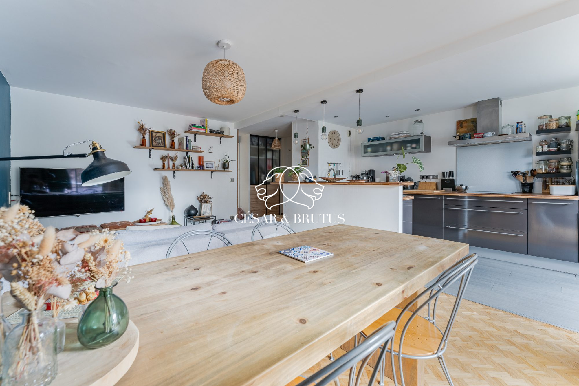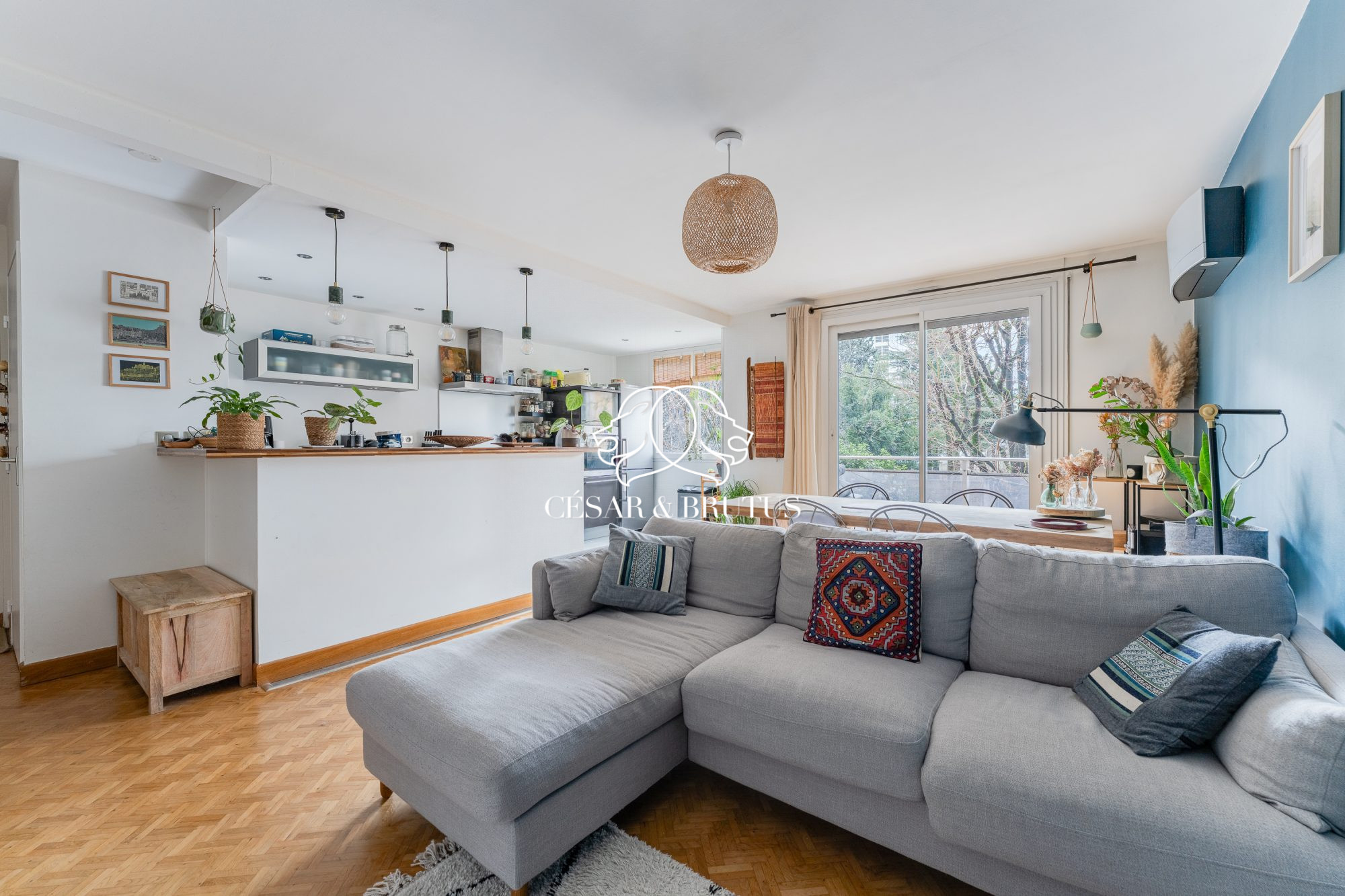 Imaginez-vous dans un spacieux séjour de 30 m² baigné de lumière, avec une vue dégagée. La cuisine américaine, aménagée et équipée, est un véritable atout pour les amateurs de cuisine. Côté nuit, vous trouverez deux chambres confortables et lumineuses, au calme absolu.