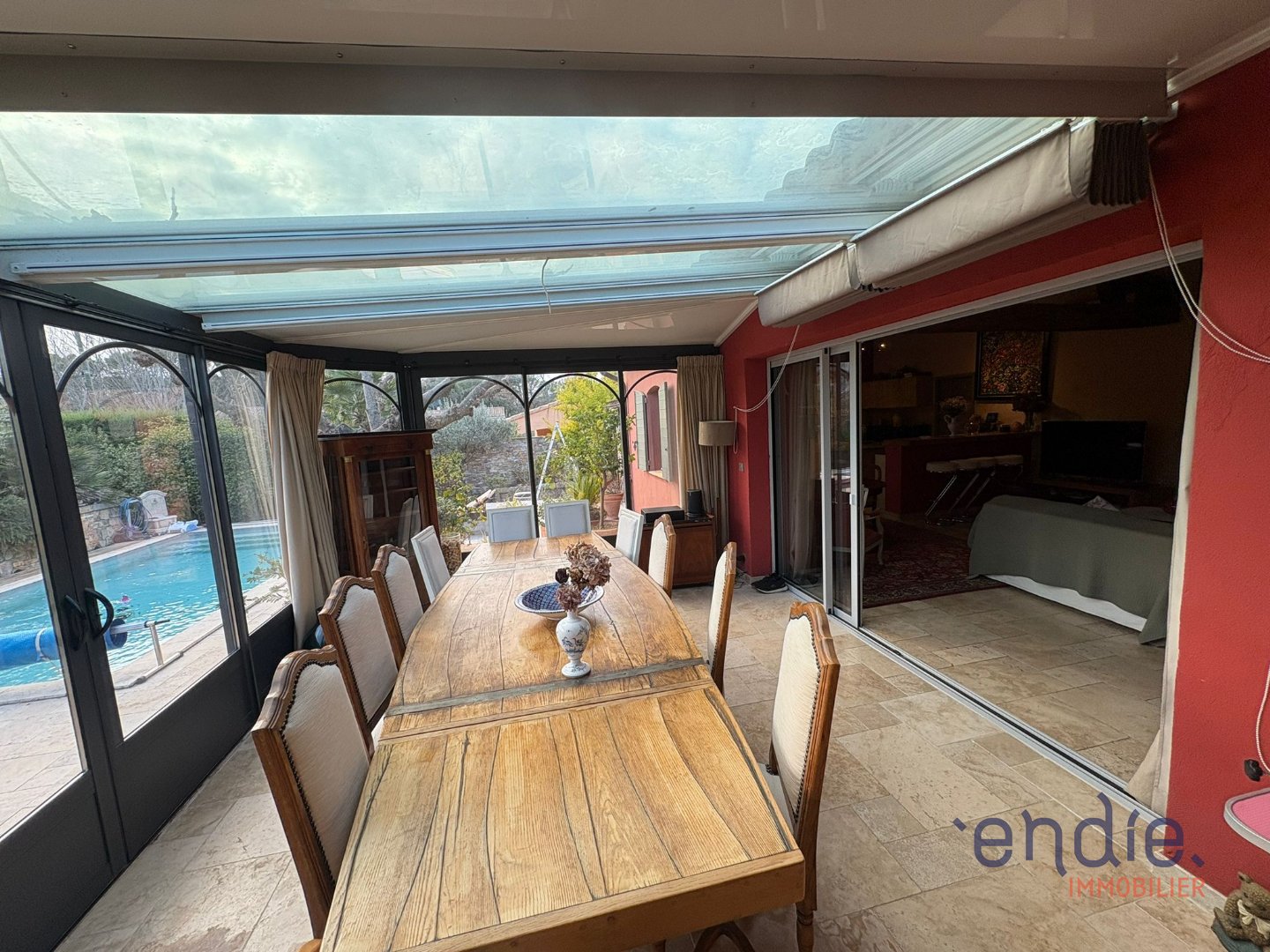 Cette charmante villa provençale de 140 m2 édifiée sur un terrain de + de 1800 m2 entièrement clôturé se compose d'un très joli séjour cathédrale, un salon avec un insert, une agréable véranda, une cuisine équipée de type américain, 3 chambres, 1 salle d'eau, 2WC, Un cellier. Un pool house avec cuisine d'été toute équipée vous promet de merveilleux repas en famille. Une piscine Desjoyaux de 8X4m ainsi qu'un terrain de boule complète les extérieurs agrémentés d'arbres et de plantations. A environ 1 km du très joli village de Lorgues. Contactez votre conseiller Endie Immobilier : Jessica Baldacchino - EI - 07 71 88 84 63 - Agent commercial indépendant Ville du greffe : DRAGUIGNAN RSAC N° 909 968 588 - Le barème de nos honoraires est disponible sur www.endie.fr (réf. 830325463) (Les informations sur les risques auxquels ce bien est exposé sont disponibles sur le site Géorisques : http://www.georisques.gouv.fr)