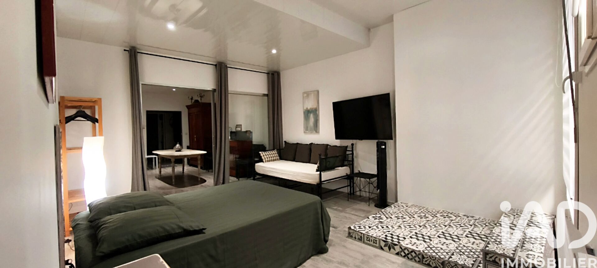 Il se compose d'un séjour-cuisine de 21 m² ouvert sur une terrasse et un jardin privatif.