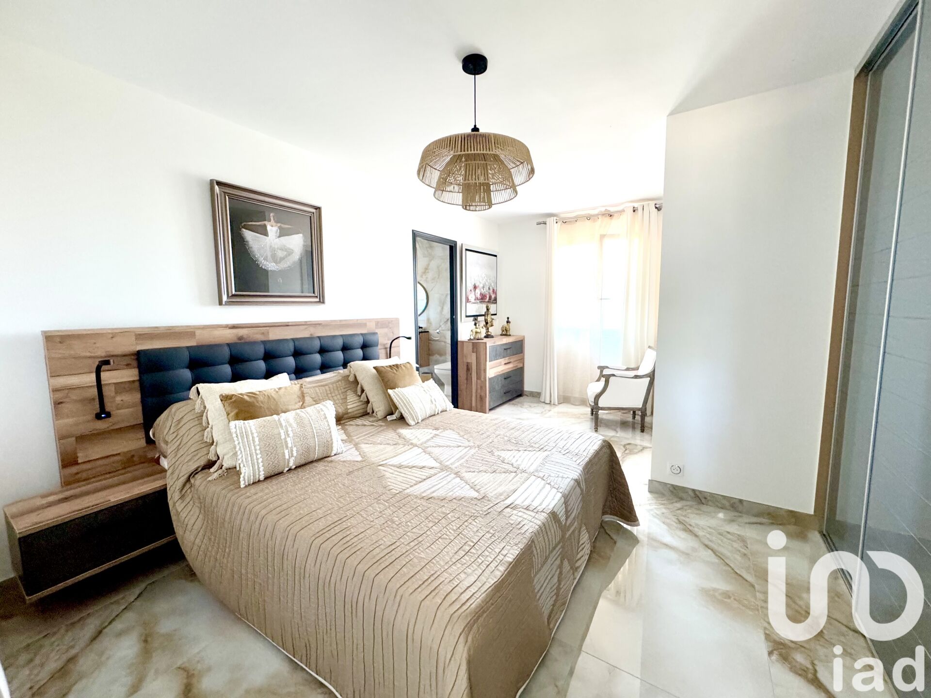 d'un séjour avec cuisine équipée, donnant directement sur une terrasse privative, idéale pour profiter du soleil et des moments en plein air ;