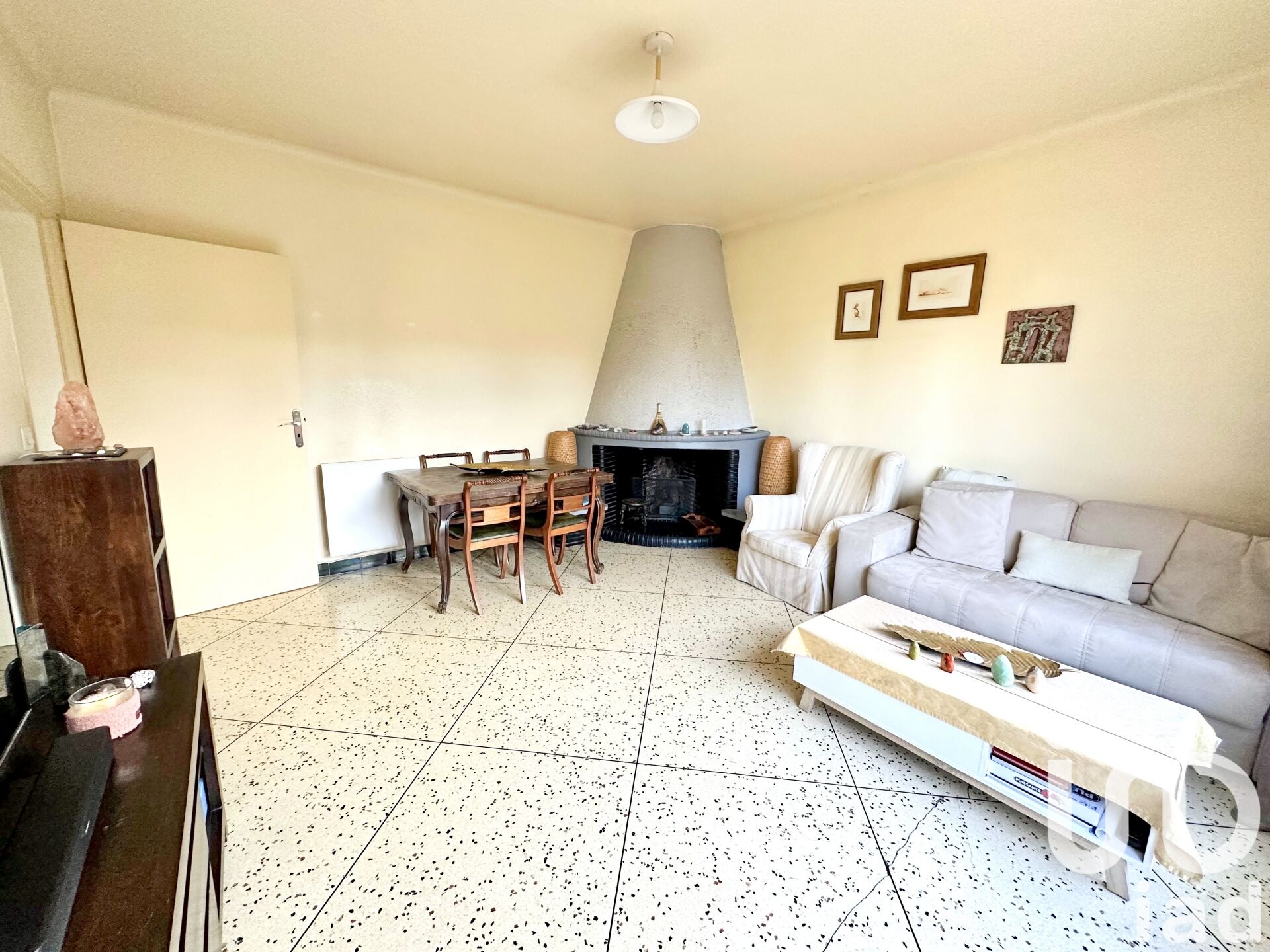 - Grande pièce de vie d'environ 55 m² avec son poêle, offrant un espace chaleureux et convivial