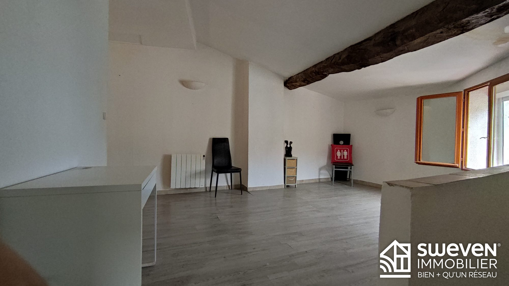 Poutres apparentes donnant du cachet à cette maison en bon état.