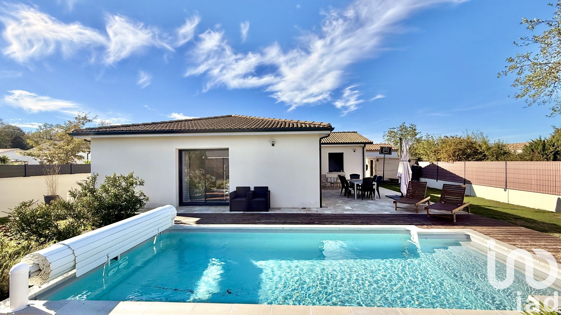 La grande pièce à vivre avec vue sur la piscine et la terrasse extérieure vous offrira un bel espace salon et salle à manger.