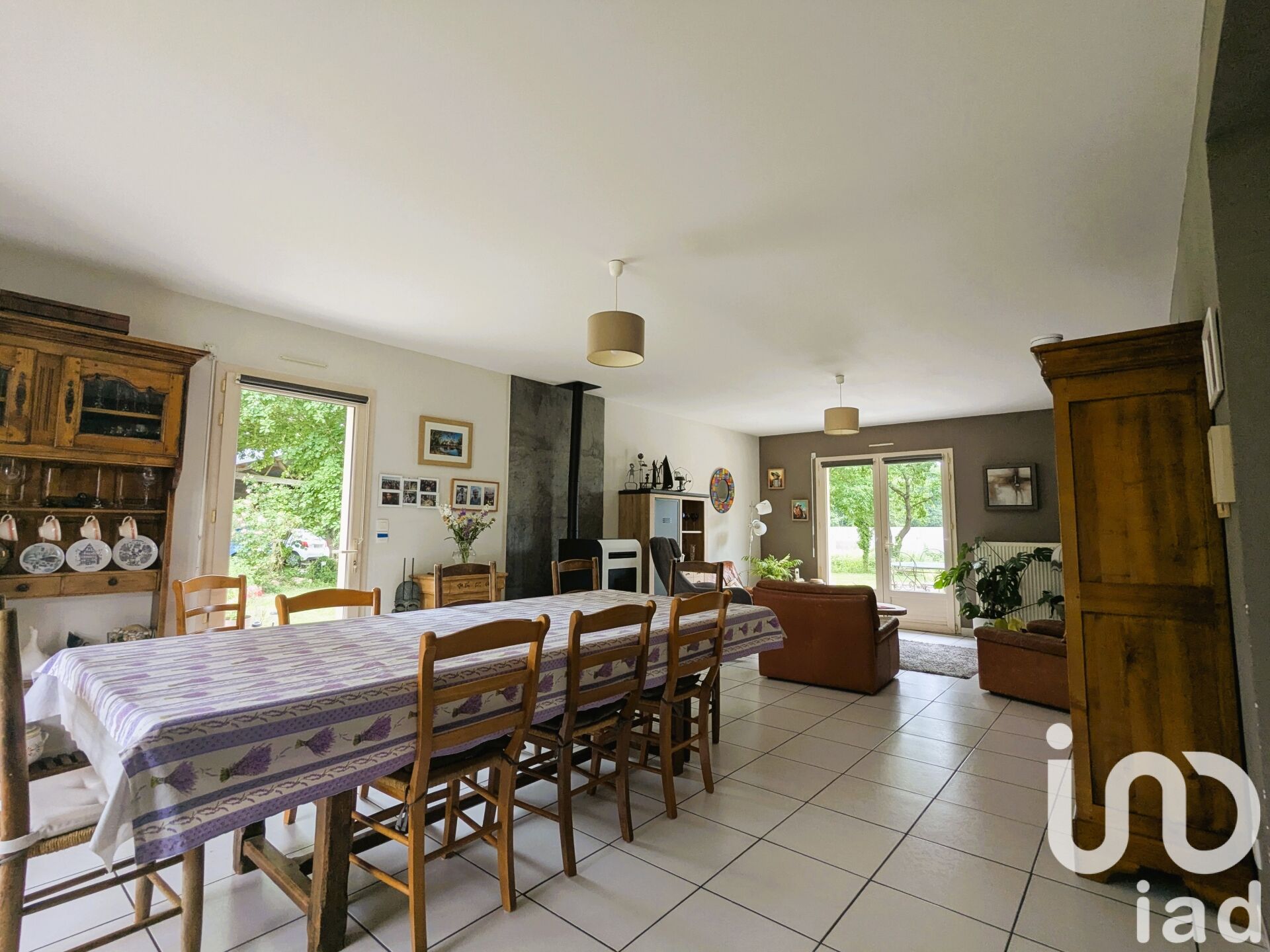 Iad France - Valerie Tanguy vous propose : En campagne de Mezières sur Couesnon, à 3 minutes de l'A84, GRANDE MAISON FAMILIALE de 193 m², sur un terrain arboré de 3000 m². Construite en 2000, la maison vous séduira dès l'entrée avec ses beaux volumes, notamment son grand séjour / salon avec poêle à granules ouvert sur l'espace cuisine aménagée et équipée pour 60 m², et l'arrière cuisine / buanderie. Toujours en rez de chaussée, 2 chambres, une grande salle de bains et un wc avec lave mains. À l'étage, 4 chambres, une grande salle d'eau avec douche, un petit grenier de stockage et un wc. La maison dispose de nombreux rangements. À l'extérieur, vous aurez le choix entre la terrasse avec pergola ou bien celle à l'ombre des arbres. Une très grande dépendance de 200 m² et un car port complètent ce bien. Le chauffage est au Gaz (citerne enterrée). La maison est mitoyenne avec une autre petite maison, l'assainissement neuf en micro station est commun aux deux habitations. Dans un cadre calme et verdoyant, cette maison nécessite quelques rafraichissements, mais elle vous offre surtout un lieu de vie lumineux et propice à la convivialité ! Honoraires d'agence à la charge du vendeur. Information d'affichage énergétique sur ce bien : classe ENERGIE C indice 138 et classe CLIMAT C indice 27. Les informations sur les risques auxquels ce bien est exposé, y compris l'obligation légale de débroussaillement, sont disponibles sur le site Géorisques : http://www.georisques.gouv.fr. La présente annonce immobilière a été rédigée sous la responsabilité éditoriale de Mme Valerie Tanguy mandataire indépendant en immobilier (sans détention de fonds), agent commercial de la SAS I@D France immatriculé au RSAC de Rennes sous le numéro 525398673, titulaire de la carte de démarchage immobilier pour le compte de la société I@D France SAS.