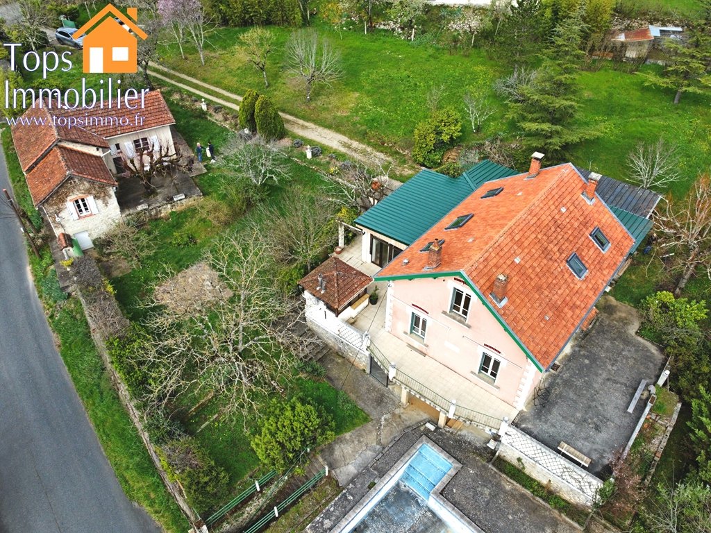 TOPS IMMO vous présente en exclusivité ce bien très rare sur le marché. Offrant une magnifique vue sur la Bastide de Villefranche de Rouergue, sur un terrain plat et arboré, cet ensemble est composé d'une maison style année 30 d'environ 165m2 à rénover intérieurement et d'une maison indépendante de 64m2 entièrement rénovée. Un écrin de verdure et un panorama magnifique aux portes du centre-ville (accessible à pied). Dans le détail : la maison principale offre au rez-de-chaussée : grande véranda de 30m2, séjour, cuisine, chambre ou bureau de 13m2, WC. Au 1er étage, une chambre avec dressing de 21m2 (superbe vue sur la ville), une salle de bain avec buanderie de 12m2 et une chambre en suite de 21m2 comprenant un espace bureau et une salle de bain. Un sous-sol total abrite une cave de 47m2, une chambre d'appoint, un WC et un coin douche donnant sur la terrasse de la piscine. Un garage attenant comprenant une citerne d'eau (pluviale). La piscine nécessite des travaux (pose d'un liner ou peinture étanche). Chauffage électrique. Travaux récents : pose de 5 vélux, toiture révisée et démoussée, avant toit et zinguerie, toitures terrasse et garage neuves (bac acier isolé). La dépendance est une maison entièrement rénovée de 64m2 comprenant un séjour de 20m2, une cuisine, une chambre de 12m2, une salle de douche neuve, un WC et une buanderie. Autres travaux récents : isolation des combles, installation électrique, nouveaux radiateurs électriques et pose d'un poêle à bois. Cette maison dispose également d'un sous-sol avec un citerne d'eau. L'ensemble est relié au tout à l'égout. Cette propriété offre un potentiel énorme avec emplacement premium pour qui souhaite vivre à proximité de la Bastide dans un environnement calme. Laissez vous séduire par son charme, sa vue et sa quiétude. Contact : Pierre Jean LACOMBE : Tel : 06 30 40 86 83 Agent Commercial (RC No : 508 933 314) pierrejean@topsimmo.fr Honoraires : 5,71 % TTC à la charge de l'acquéreur Prix hors honoraires d'agence : 210 000 Prix moyens des énergies indexés sur les années 2021 2022 2023 (abonnement compris). Montant estimé des dépenses annuelles d'énergie pour un usage standard : entre 3 220 et 4 420 par an.