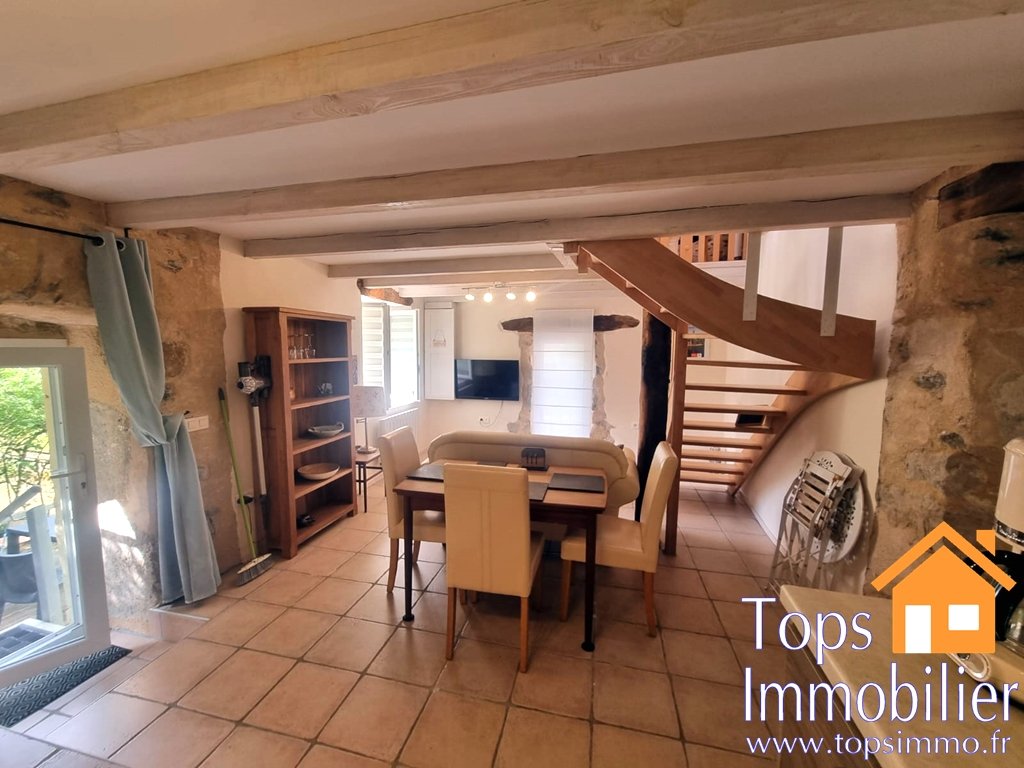 Bel ensemble , composé de deux maisons situé à Villefranche de Rouergue en bord de l'Aveyron meublées et entièrement équipées. Un parking privé 3 places complète l'ensemble. Située à 800m du centre-ville, ce bien offre la possibilité d'un rapprochement familial ou d'un revenu locatif. La maison principale, d'environ 75m2 habitables, est une ancienne bâtisse en pierre dans laquelle les travaux de rénovation ont été effectués, notamment : toiture complète et isolation neuve, peinture de la façade et volets , bardage de la véranda neuf, porte d'entrée et menuiseries double vitrage neuves - couverture de la terrasse neuve. Elle bénéficie en rez-de-chaussée d'une large terrasse couverte offrant un bel espace de vie agrémenté d'un BBQ fixe. L'entrée donne sur une cuisine entièrement équipée ouverte sur la salle à manger et un coin salon. Cet espace se complète d'une grande véranda très lumineuse avec vue sur le jardin et l'Aveyron qui passe devant la maison et au loin le clocher de la collégiale Notre D.ame Un premier WC avec lavabo d'invité se situe également au RDC. Vous trouverez à l'étage deux chambres de 12 m2 et 11m2 ainsi qu'une salle de douche et un deuxième WC. La maison dispose par ailleurs d'un atelier et d'une buanderie séparés. Chauffage électrique dans toute la maison et climatisation réversible au RDC et à l'étage. Un poêle à bois fonctionnel est disponible dans le salon. Un grand jardin plat devant la maison permettra facilement l'installation d'une piscine (avec eau et électricité à proximité). Par ailleurs, une source (située entre l'atelier et la buanderie) permet un arrosage économique du jardin. La maison annexe d'environ 40m2 habitables est une ancienne maison également en pierre qui a été entièrement rénovée et qui bénéficie d'une entrée autonome ainsi que d'une terrasse et jardin privatifs. Elle offre au RDC une cuisine ouverte sur la salle à manger et le séjour. A l'étage se trouvent une belle chambre et une salle de douche. Chauffage électrique. Menuiseries double vitrage. Le tout sur un terrain de 3831m2. Parking 3 voitures.