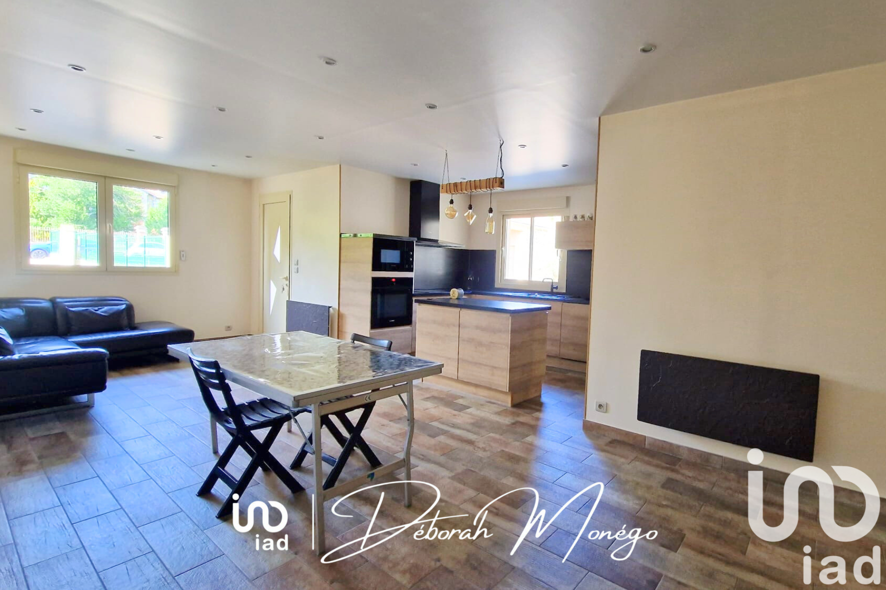 Iad France - Déborah Monégo vous propose : Belle Maison récente de plain-pied de 90 m² avec grande dépendance à Gargenville. Cette charmante maison de plain-pied de 90 m², entièrement rénovée en 2018, est située dans un quartier paisible de Gargenville, proche des écoles, des commerces, de la gare et de l'accès à l'autoroute A13. Dès l'entrée, vous serez séduit par ce bel espace de vie d'environ 34 m² avec sa cuisine aménagée et équipée ouverte sur un beau salon-séjour, une chambre de 14 m² avec placards, une salle d'eau avec WC, une buanderie, ainsi que 2 belles chambres de 14 m² dotées chacune d'une mezzanine offrant une atmosphère chaleureuse et accueillante. En complément, vous bénéficierez d'une grande dépendance d'environ 64 m² avec garage, idéale pour un atelier, du stockage, ou tout autre projet selon vos besoins. Grâce à sa hauteur de 3 mètres, la porte de garage offre la possibilité d'accueillir des véhicules de chantier. Le terrain de 722 m² est orné de magnifiques pavés offrant un extérieur soigné, pratique et facile d'entretien. Côté équipements, la maison est connectée à la fibre optique pour un accès internet performant, et est accessible aux personnes à mobilité réduite. Le système de chauffage individuel électrique et les fenêtres en PVC double vitrage garantissent un confort thermique optimal en toutes saisons. Très bon état général de la maison qui ne nécessite aucun travaux ! Ne passez pas à côté de cette occasion unique, contactez moi pour organiser une visite dès maintenant ! Honoraires d'agence à la charge du vendeur. Information d'affichage énergétique sur ce bien : classe ENERGIE E indice 322 et classe CLIMAT B indice 10. Les informations sur les risques auxquels ce bien est exposé, y compris l'obligation légale de débroussaillement, sont disponibles sur le site Géorisques : http://www.georisques.gouv.fr. La présente annonce immobilière a été rédigée sous la responsabilité éditoriale de Mme Déborah Monégo mandataire indépendant en immobilier (sans détention de fonds), agent commercial de la SAS I@D France immatriculé au RSAC de Versailles sous le numéro 453730376, titulaire de la carte de démarchage immobilier pour le compte de la société I@D France SAS.