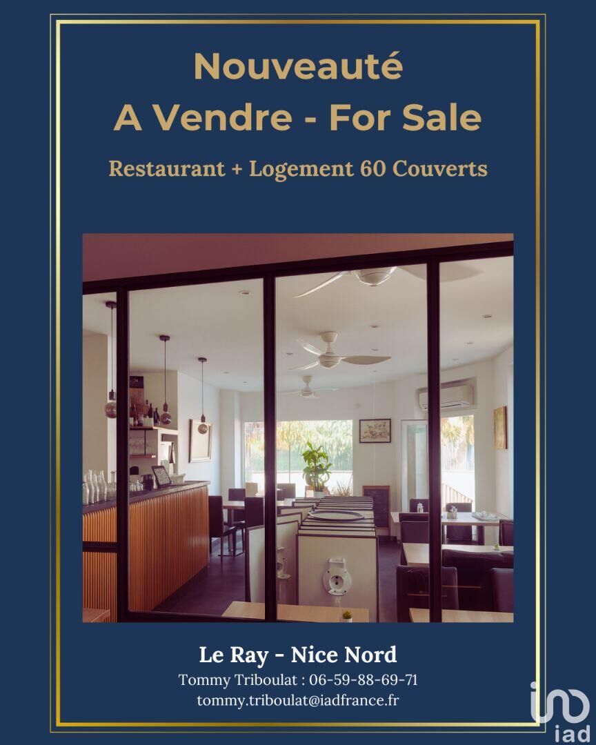 Iad France - Tommy Triboulat (06 59 88 69 71) vous propose : À VENDRE – RESTAURANT AVEC LOGEMENT / EMPLACEMENT PREMIUM Restaurant d’angle entièrement rénové en 2021, situé dans un quartier dynamique et recherché. Surface totale : 90 m² environ dont • 50 m² environ de salle de restaurant • 40 m² environ actuellement aménagés en espace de vie (ancien appartement) Capacité : • 20 couverts en salle • 40 couverts en terrasse Cuisine traditionnelle, avec extraction en toiture Chiffre d'affaires : 520 000 € sur seulement 7 services hebdomadaires Loyer mensuel : 1 800 € Opportunité idéale pour un couple ou un chef souhaitant s’installer dans un lieu clé en main, alliant cachet, performance et potentiel de développement. Information d'affichage énergétique sur le bien associé à cette annonce : DPE NS indice 0 et GES NS indice 0. La présente annonce immobilière a été rédigée sous la responsabilité éditoriale de M. Tommy Triboulat (ID 84880), Agent Commercial mandataire en immobilier immatriculé au Registre Spécial des Agents Commerciaux (RSAC) du Tribunal de Commerce de Nice sous le numéro 934184904 Retrouvez tous nos biens sur notre site internet. www.iadfrance.fr.