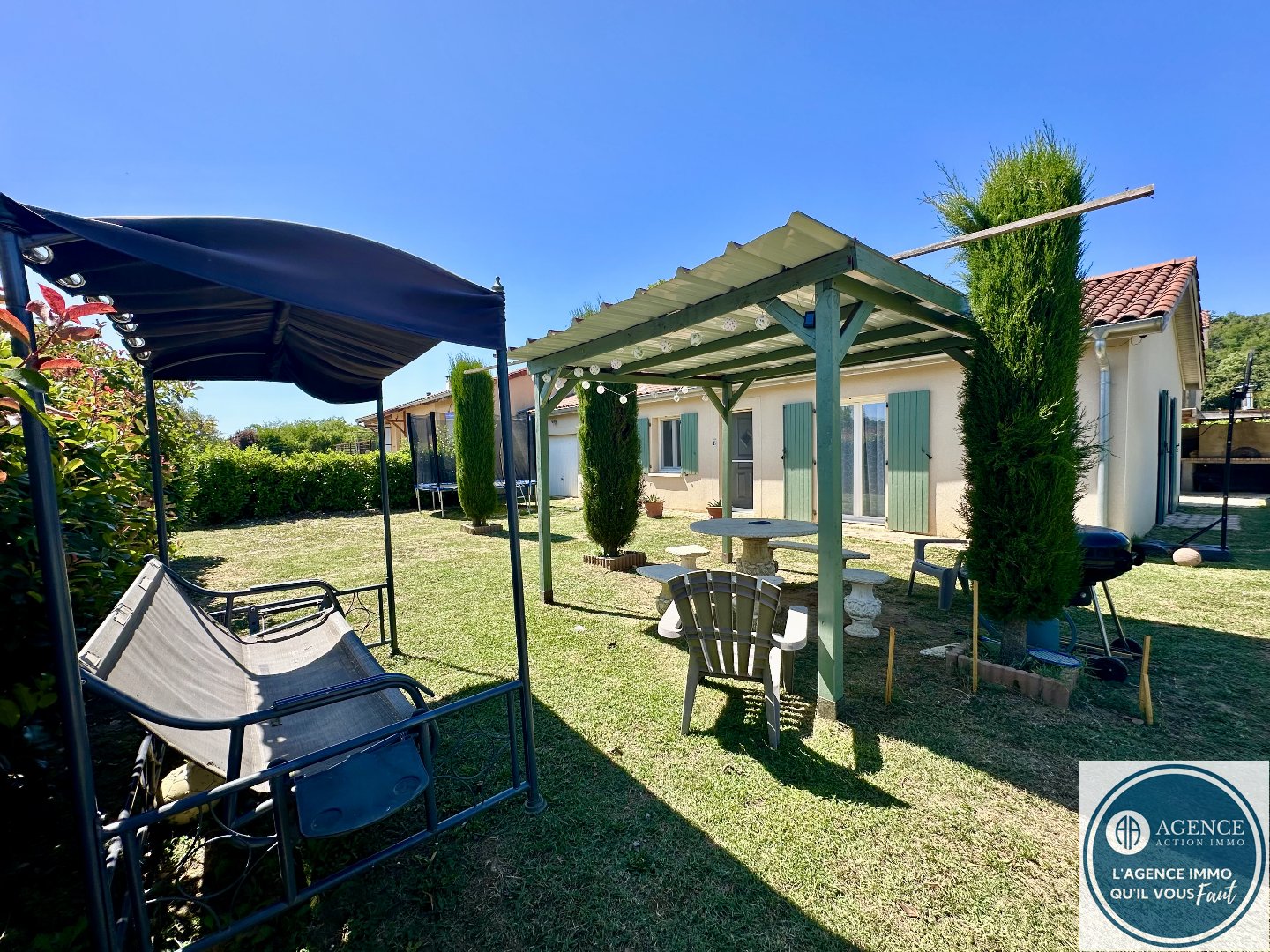 Maison de plain-pied fonctionnelle et confortable à découvrir sans attendre ! Laissez-vous charmer par cette maison de plain-pied offrant un cadre de vie pratique et chaleureux. Vous profiterez d'un salon-séjour baigné de lumière, parfait pour partager de beaux moments en famille ou entre amis. La cuisine, moderne et entièrement équipée, est prête à accueillir vos talents culinaires. Côté nuit, trois chambres vous offrent de multiples possibilités : espace parental, chambres d'enfants ou bureau. À l'extérieur, une agréable terrasse d'été avec four à bois vous invite à la convivialité. Le tout est implanté sur un terrain clos de 756 m², idéal pour laisser jouer les enfants ou gambader les animaux en toute sécurité. Un bien agréable à vivre, à visiter sans tarder. Cette maison vous est présentée par Stéphanie Liccia.