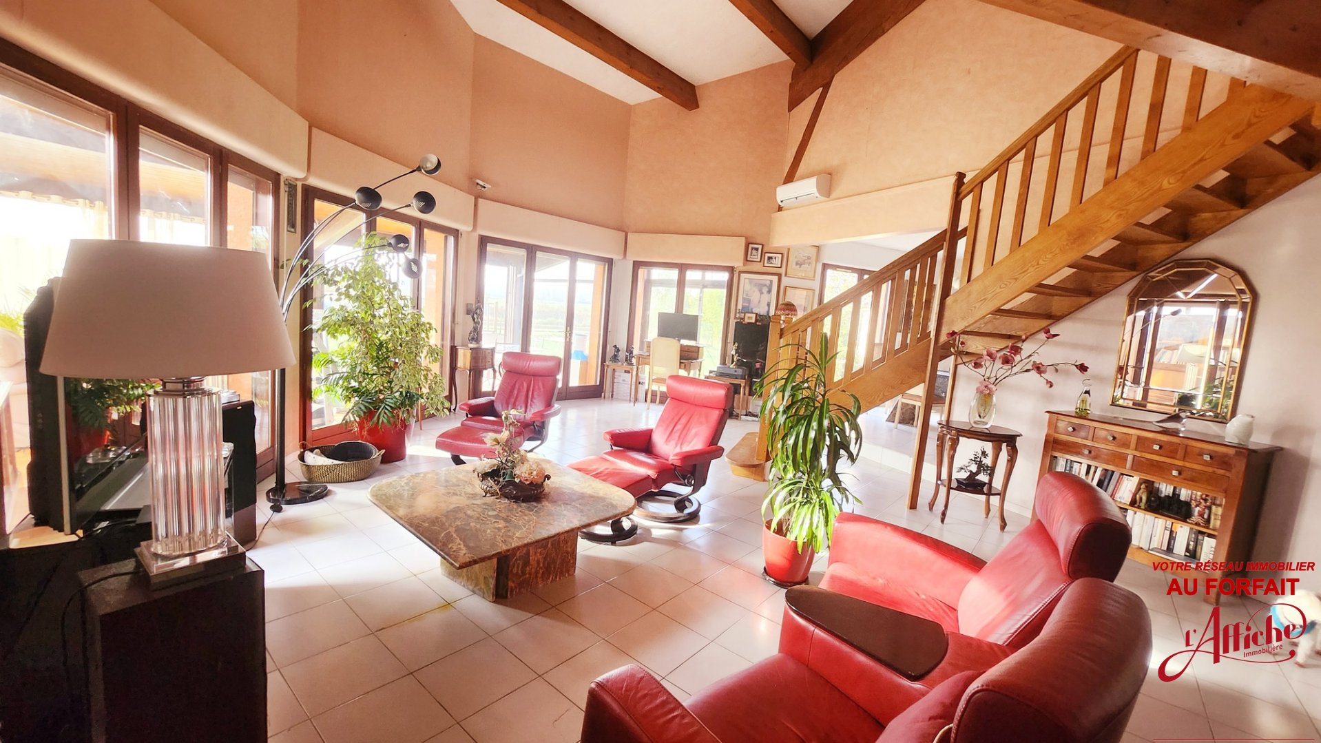 RENSEIGNEMENTS ou VISITES auprès de votre conseiller Sébastien BOSCHAT EI - 06 79 42 61 29 Bienvenue dans cette belle maison d'architecte de 1999, offrant de généreux volumes et située sur une vaste parcelle de 2700 m². Idéalement positionnée à proximité immédiate de toutes les commodités, non loin de l'accès à l'A64, et à seulement 25 minutes de Toulouse, elle vous séduira par sa vue imprenable sur la chaîne des Pyrénées. Dès l'entrée, un espace accueillant avec placard aménagé vous guide vers un séjour cathédrale, s'ouvrant sur une charmante véranda de 40 m² et une cuisine aménagée. Cette dernière est adossée à une pièce de 28m² avec mezzanine, idéale pour créer un coin détente, un bureau ou une buanderie. Au rez-de-chaussée, deux chambres spacieuses de 11m² et 14m² vous accueillent, accompagnées d'une salle de bain récemment rénovée et d'un WC indépendant. Un escalier dans le salon conduit à une mezzanine offrant un espace indépendant avec une entrée dédiée. Trois belles chambres de 23m², 15m² et 11m² s'y trouvent, accompagnées d'une salle de bain, d'une salle d'eau, d'un WC indépendant et d'une cuisine. À l'extérieur, vous profietrez d'un vaste terrain de plus de 2700 m² avec sa piscine de 10x5 dont le liner et la pompe ont été récemment changés. Une cour goudronnée récemment aménagée complète le charme extérieur, avec un garage double incluant une mezzanine. Le confort de cette maison est assuré par un insert, des radiateurs électriques, et une pompe à chaleur air/air réversible installée en 2022 au RDC et à l'étage. Cette vaste maison est idéale pour une grande famillle ou famille recomposée ou pour disposer d'un complément de revenus en louant l'appartement T3 indépendant du 1er étage. A visiter rapidement ( L'AFFICHE IMMOBILIERE 1er réseau au FORFAIT vous faisant ECONOMISER jusqu'à 70% sur les mêmes honoraires pratiqués dans une autre agence) Honoraires TTC charge vendeur - Annonce rédigée sous la responsabilité éditoriale de votre mandataire indépendant BOSCHAT Sébastien EI RSAC N° 519 110 753 Les informations sur les risques auxquels ce bien est exposé sont disponibles sur le site Géorisques : "www.georisques.gouv.fr.