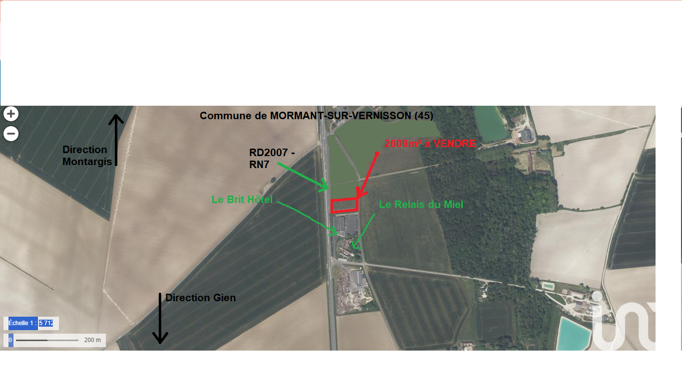 Iad France - Isabelle Lyron vous propose : * Opportunité Rare : Terrain à Bâtir de 2609 m² à Mormant-sur-Vernisson. Terrain constructible au bon vouloir de la Mairie de Mormant sur Vernisson pour concrétiser votre projet immobilier. Superficie de 2609 m². Accessible depuis le Chemin des granges ou Chemin du Vernisson actuellement. Accès via RD2007 soumis à demande d'autorisation conformément à la législation en vigueur sur les voies d'accès liées aux routes départementales afin de modifier le marquage au sol. * Localisation privilégiée : Vous serez à seulement 5km du centre-ville de Montargis, offrant ainsi un accès rapide aux commerces, écoles, services de proximité, et de toutes commodités. Ligne R vers Paris Gare de Lyon toutes les heures en 1H30. Un arrêt de bus se trouve à seulement 200m, facilitant vos déplacements au quotidien. Situé en bordure du Brit Hôtel et du Relais du Miel, enseignes connues pour leur accueil touristique. Sur la RD2007 (RN7) - 'Route du Soleil', principal grand axe routier hors autoroute. Exposition du terrain Est / Ouest, à viabiliser par l'Est. Pour plus de précision n'hésitez pas à me contacter par SMS, mail ou whatsapp. Honoraires d'agence à la charge du vendeur. Bien non soumis au DPE. Les informations sur les risques auxquels ce bien est exposé, y compris l'obligation légale de débroussaillement, sont disponibles sur le site Géorisques : http://www.georisques.gouv.fr. La présente annonce immobilière a été rédigée sous la responsabilité éditoriale de Mme Isabelle Lyron mandataire indépendant en immobilier (sans détention de fonds), agent commercial de la SAS I@D France immatriculé au RSAC de BOURGES sous le numéro 501591507, titulaire de la carte de démarchage immobilier pour le compte de la société I@D France SAS.