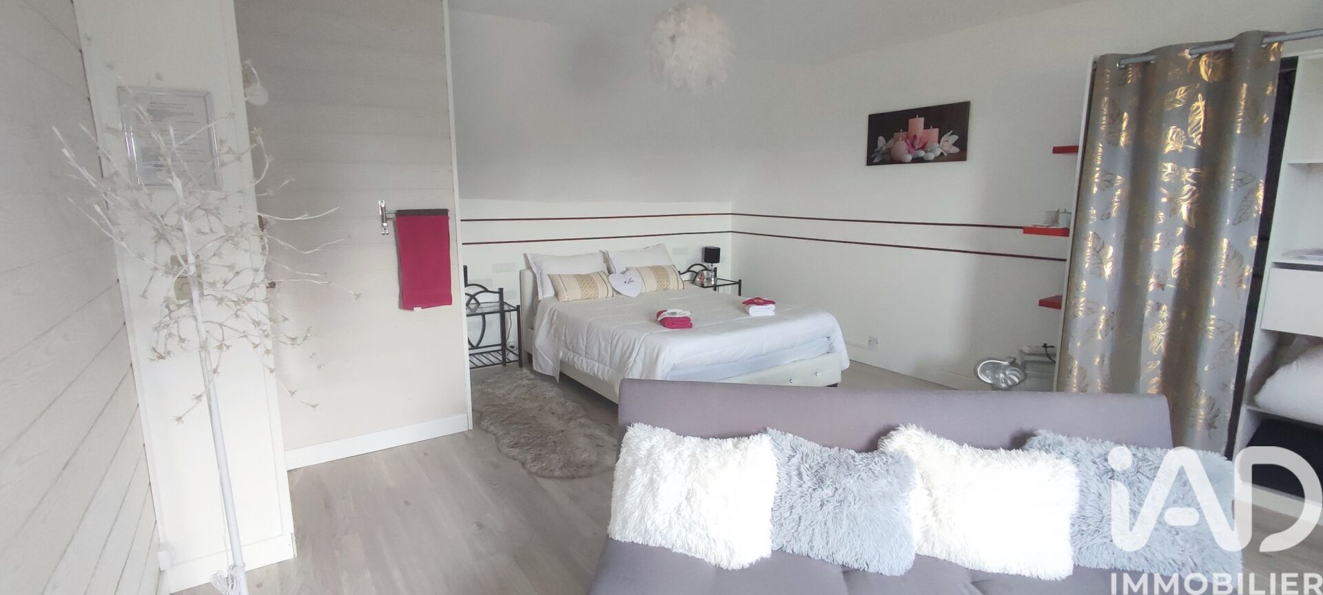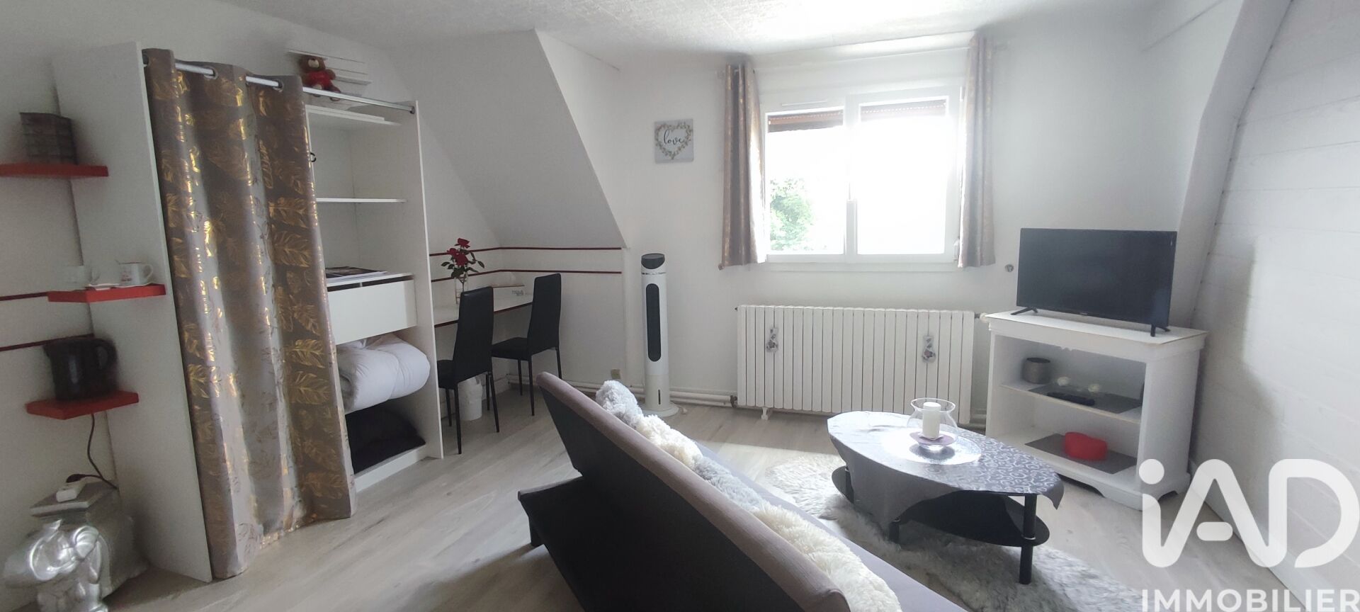 - Une CUISINE ÉQUIPÉE ET AMÉNAGÉE ouverte sur le SÉJOUR desservant en extérieur une TERRASSE, une chambre et une salle d'eau avec wc.